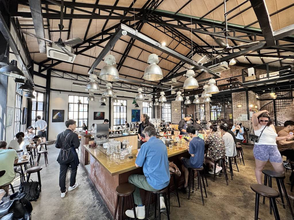 - Atmosphere: Industrial-chic with massive communal tables equipped with industrial power strips.